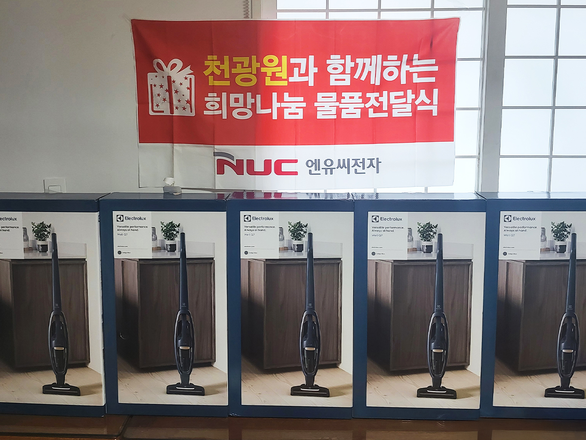 건강주방가전 기업 ㈜엔유씨전자(회장 김종부)가 연말을 맞아 아동양육시설인 천광보육원에 200여만 원 상당의 후원물품을 기증했다.