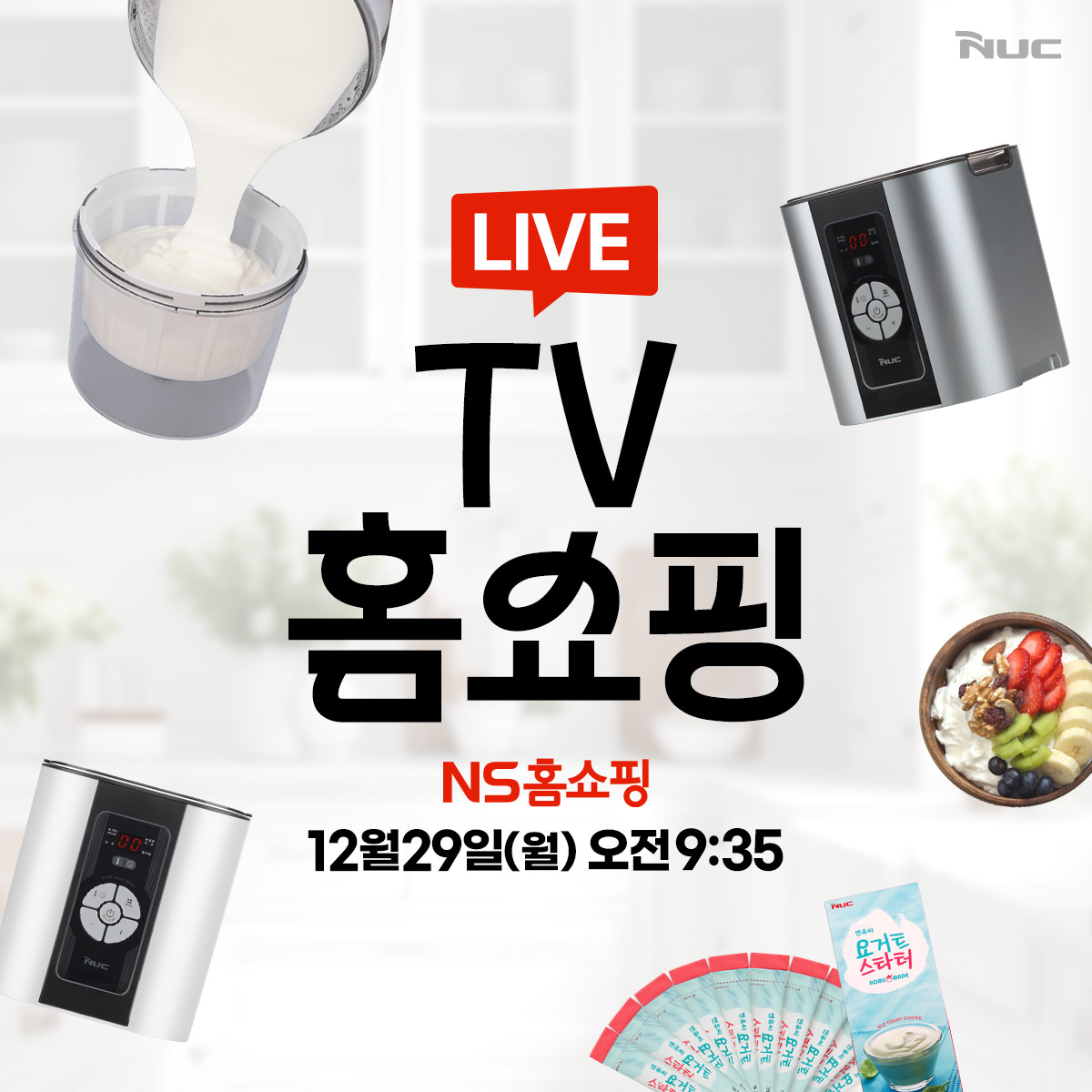 건강 주방가전 기업 ㈜엔유씨전자(회장 김종부)가 오는 29일 오전 9시 35분부터 10시 40분까지 약 65분간 NS홈쇼핑을 통해 ‘스마트 요거트 메이커’ 10차 앵콜 방송을 진행한다.