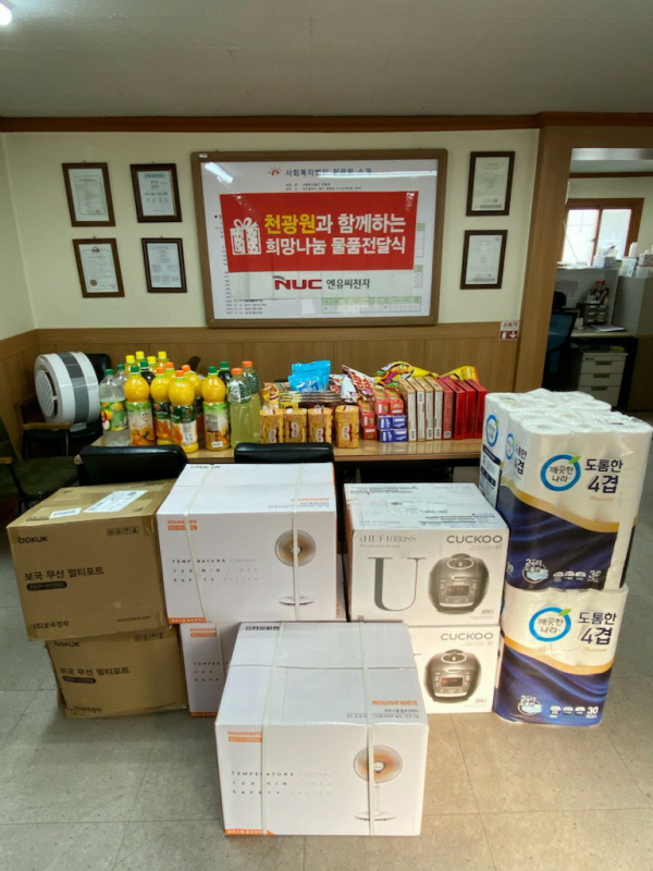 엔유씨전자는 지난 23일 연말을 맞아 대구 지역 아동보육원에 밥솥, 히터 등 가전제품을 기증했으며, 보육원 아이들이 건강하게 자랄 수 있도록 필요한 생필품을 전달했다.